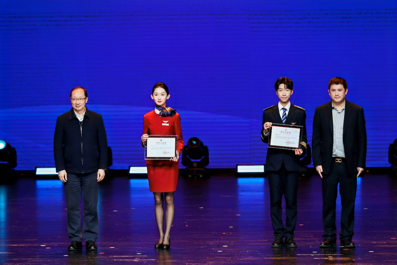 随后,与会领导向优秀学子颁发了企业专业奖学金,鼓励鞭策航服专业学子志存高远,见贤思齐,在专业学习和技能锤炼方面不断精进,努力成长为优秀民航人。颁奖过程氛围热烈,掌声不断,彰显了校企双方对高素质专业人才培养的重视,也进一步激发了全体新生深耕专业、创先争优的热情与动力。
