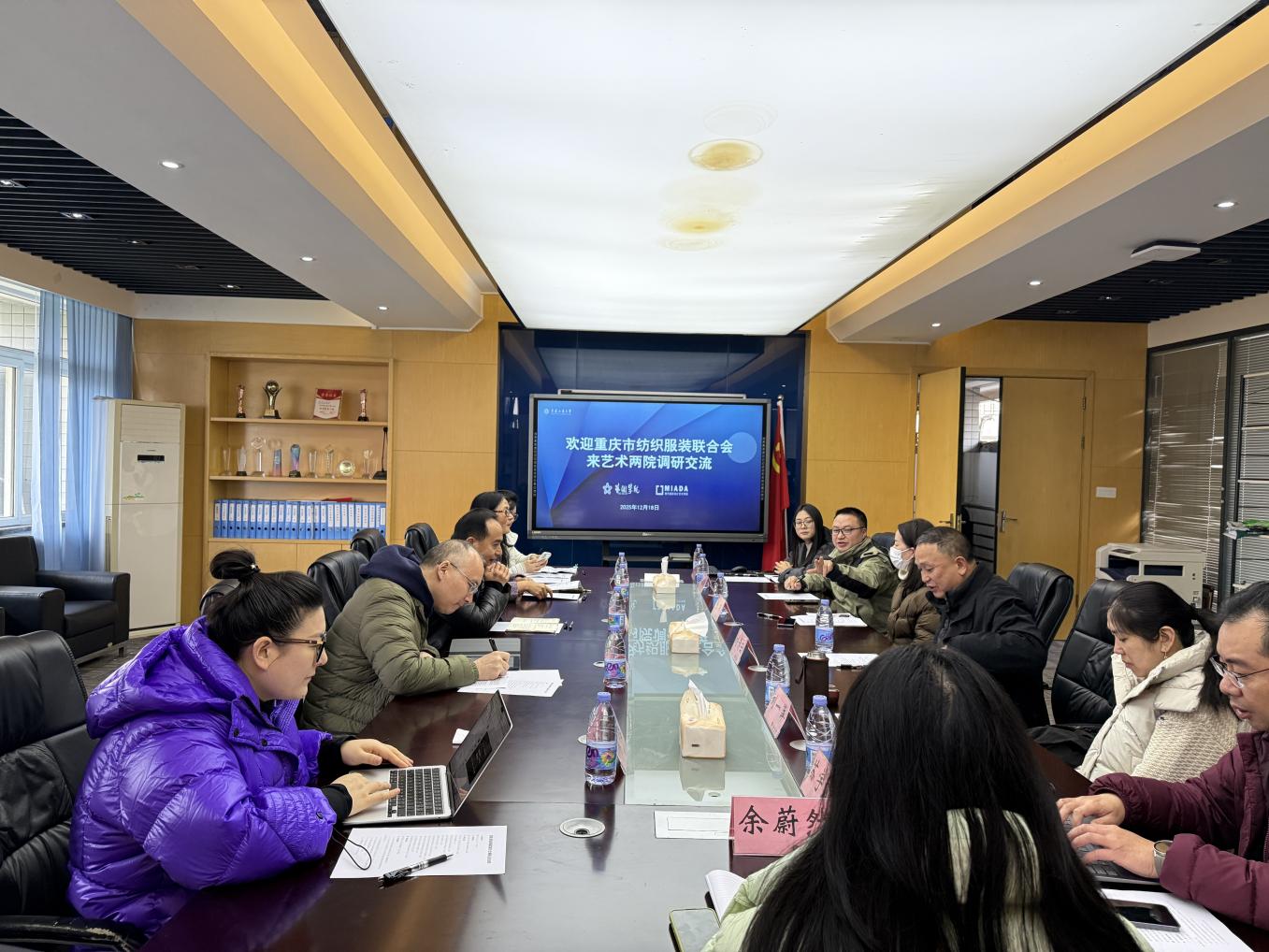 12月18日,重庆纺织服装联合会专职副会长刘清云等人一行来我院开展调研交流活动,艺术两院党委(党总支)书记唐玺、现代国际设计艺术学院副院长汪维丁、艺术学院副院长李洋及两院服装与服饰设计系主任胡兰、席培参加此次座谈会,会议由汪维丁主持。