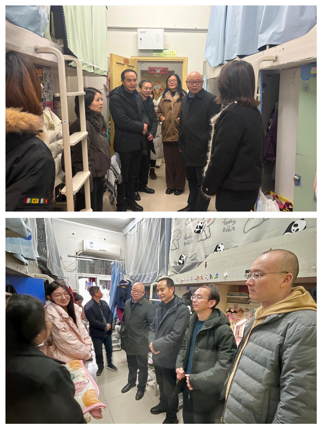座谈结束后,院领导为学生代表逐一送上元旦慰问礼品,并表达“元旦快乐、学业进步”的美好祝愿。随后,院领导深入学生宿舍,与同学们亲切交谈,询问同学们元旦假期安排、学习进展、返乡计划及生活中的实际困难,叮嘱同学们注意防寒保暖与宿舍安全,勉励大家专注学业、互助共进,将学校的关爱转化为成长成才的动力。