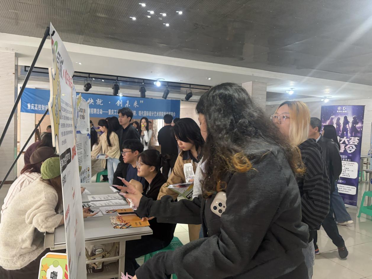 2026年4月15日上午,艺术两院在重庆工商大学兰花湖片区食堂三楼成功举办2026届毕业生“渝快就·创未来”重庆高校财经商贸常设就业市场2026年系列招聘活动----重庆工商大学艺术学院、现代国际设计艺术学院专场招聘会,旨在搭建校企对接桥梁,促进毕业生高质量就业。